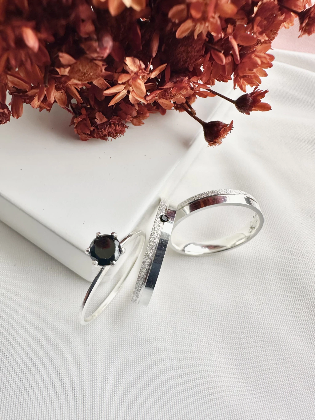 PAR DE ALIANÇAS DE NAMORO PRATA 950 | Modelo Aurora Black