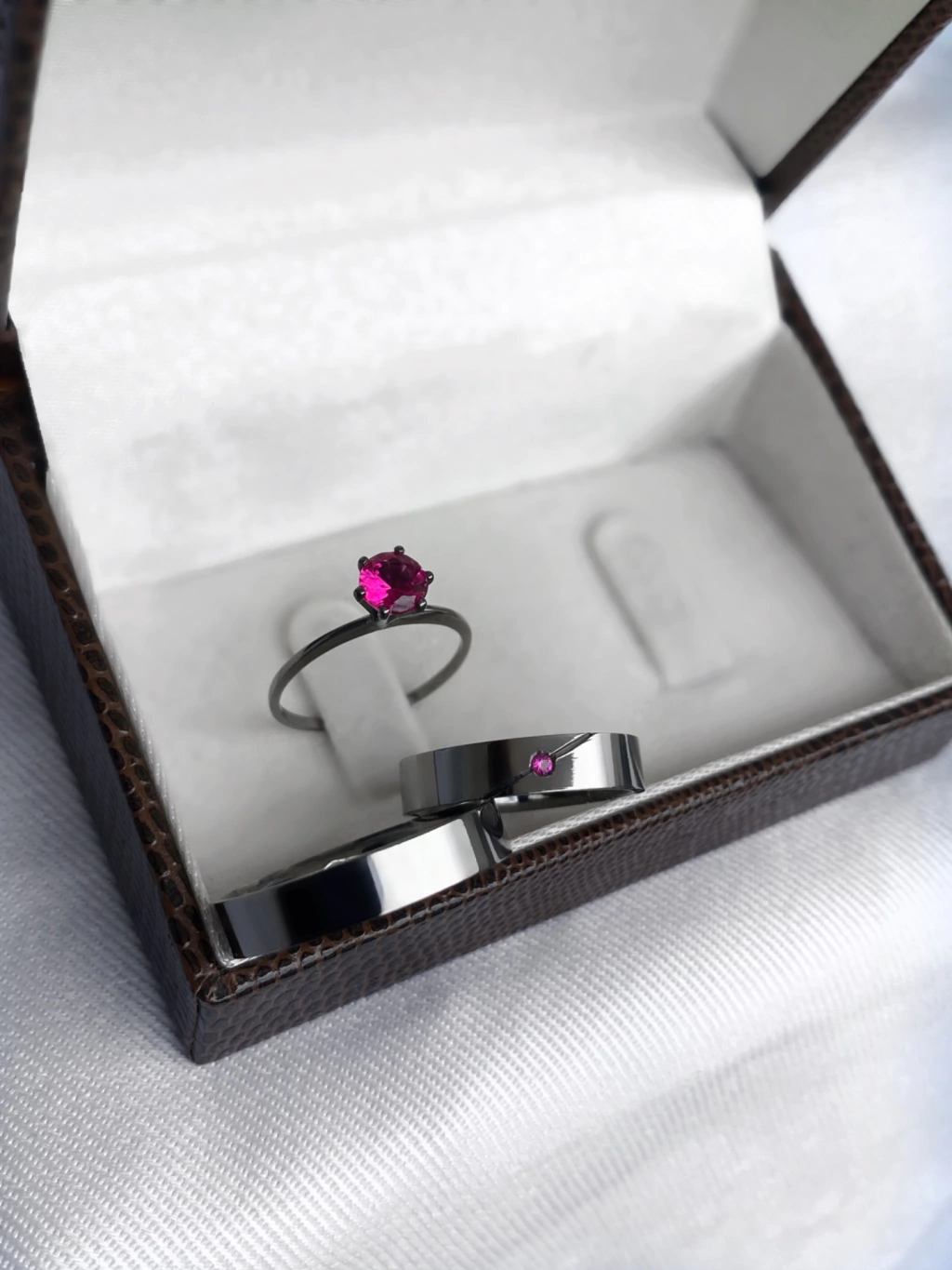 PAR DE ALIANÇAS DE NAMORO PRATA 950 BANHADA A RODIO NEGRO | Modelo Black Pink.