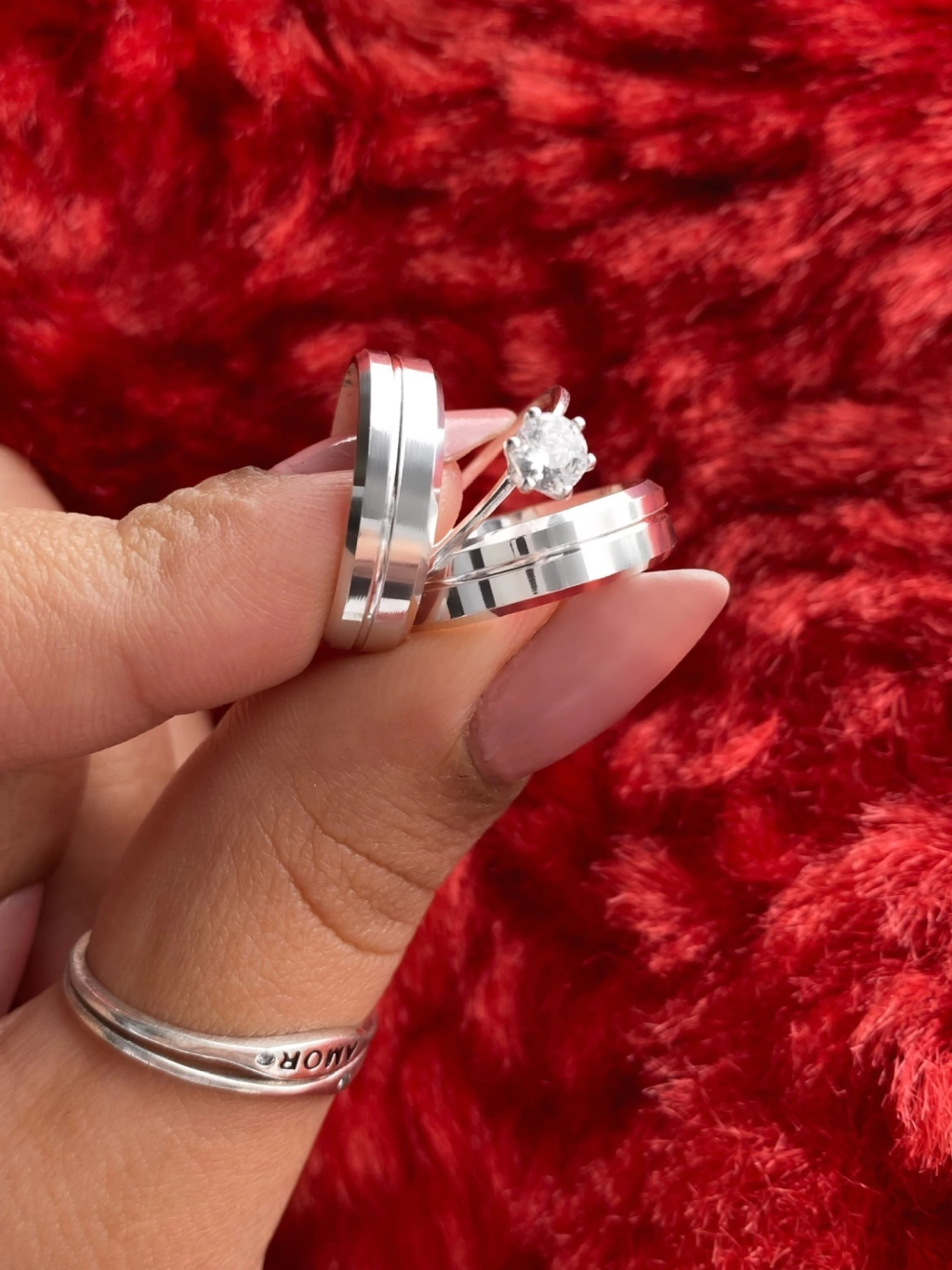 PAR DE ALIANÇAS DE NAMORO PRATA 950 | Modelo Perfect.