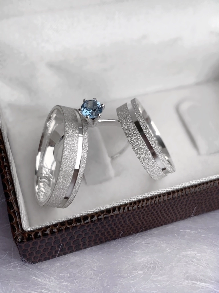 PAR DE ALIANÇAS DE NAMORO PRATA 950 | Modelo Duna.