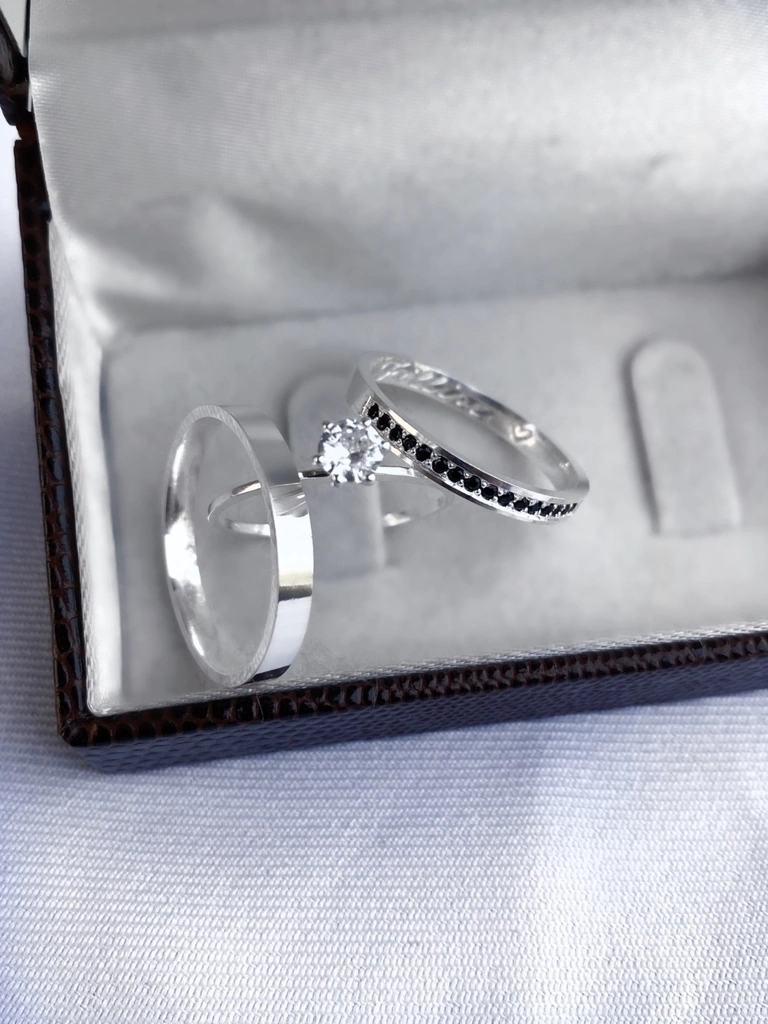 PAR DE ALIANÇAS DE NAMORO PRATA 950 | Modelo Duo.